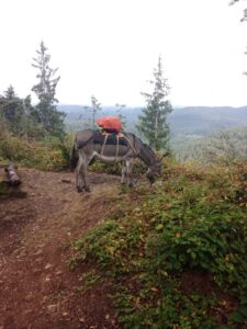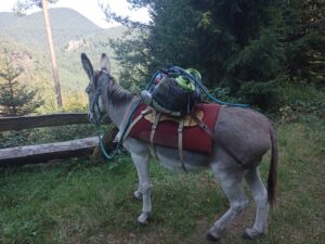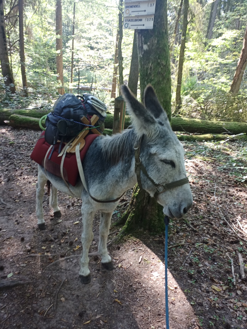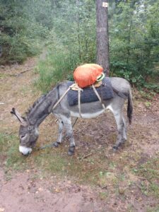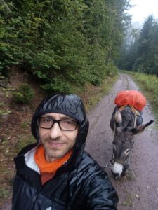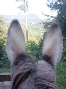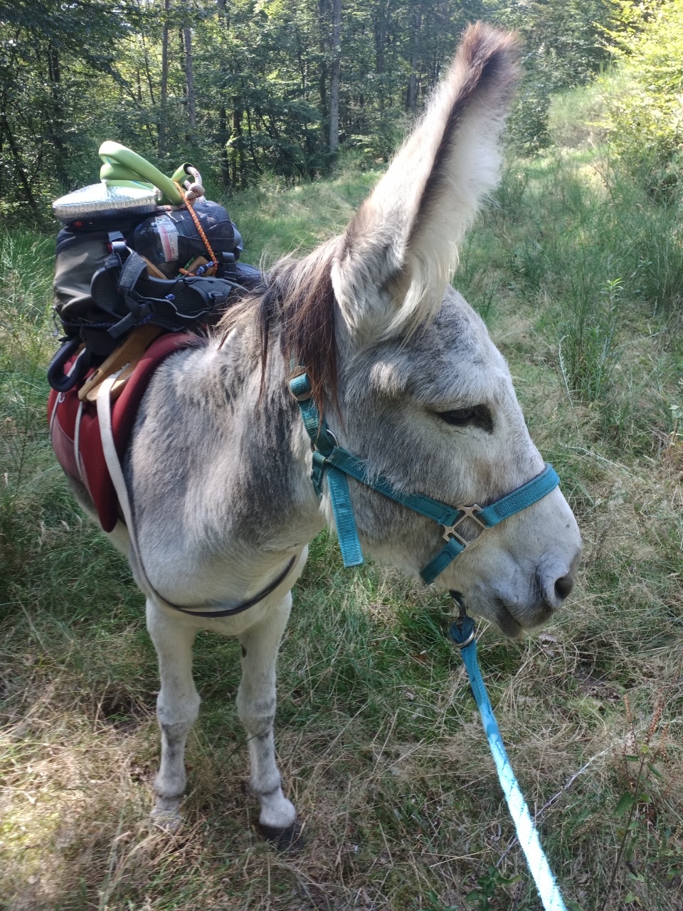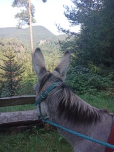 Heute habe ich mich für einen anderen Esel entschieden….um mehr Erfahrung mit den unterschiedlichen Charakteren zu sammeln…die Wahl fiel auf Dali…ein 11 jähriges Männchen…er sollte wohl dazu neigen, wenn es bergab geht, loszurennen….na dann…ich hatte Mal so einen Wanderesel als Laufpartner und konnte mir ungefähr vorstellen, was das bedeutet….