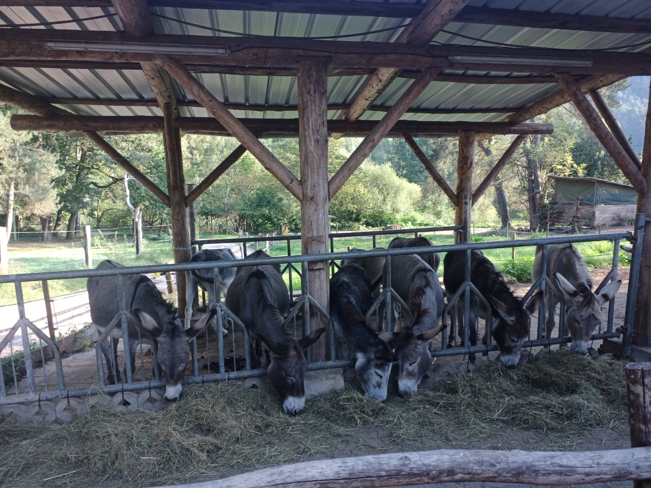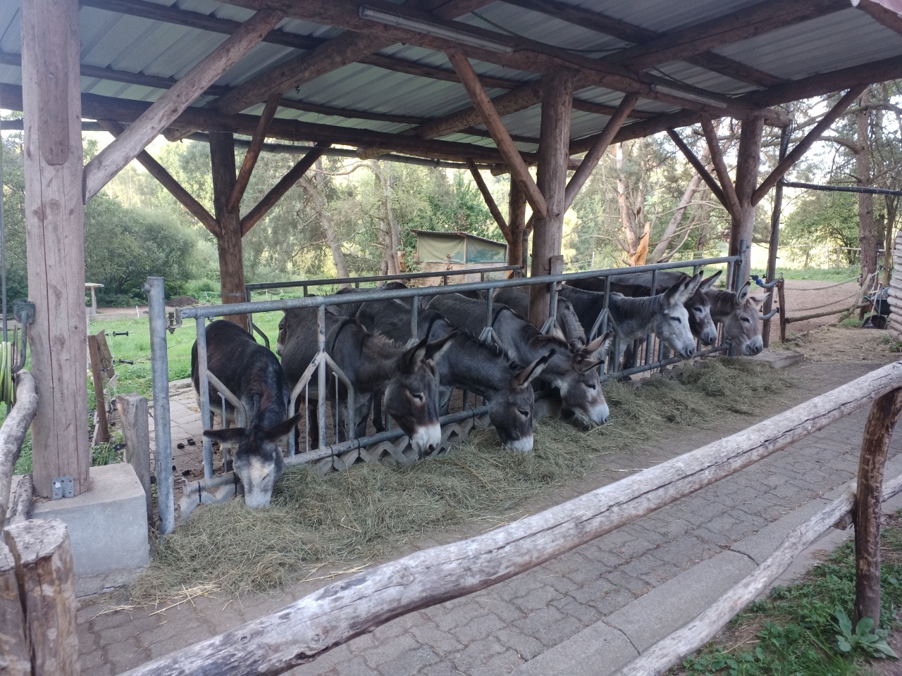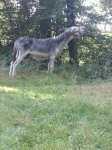 Wir waren dann so kurz vor 17h bei der Eselvermietung…. Joël war noch nicht da….. Hop wurde beim Hufe auskratzen immer nervöser und zog das Bein ständig weg …es sah so aus, als ob ihn die Fliegen ziemlich nerven……Hmmm …ich habe es immer wieder versucht, aber er zog immer wieder zurück und weichte aus …ich habe dann abgebrochen, um ihn nicht weiter zu stressen, und ihn zum Fressen ins Gatter gelassen….die Hufreinigung hatte dann später Joël beendet, als er kam…. Tja….das war es dann erstmal…4 Tage schon vorbei….wir erzählten noch etwas und verabschiedeten uns dann…. tschüss liebe Esel…. Wiedersehen nicht ausgeschlossen….
