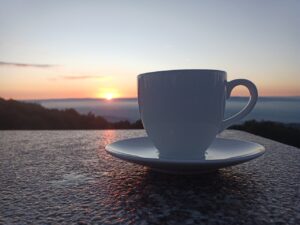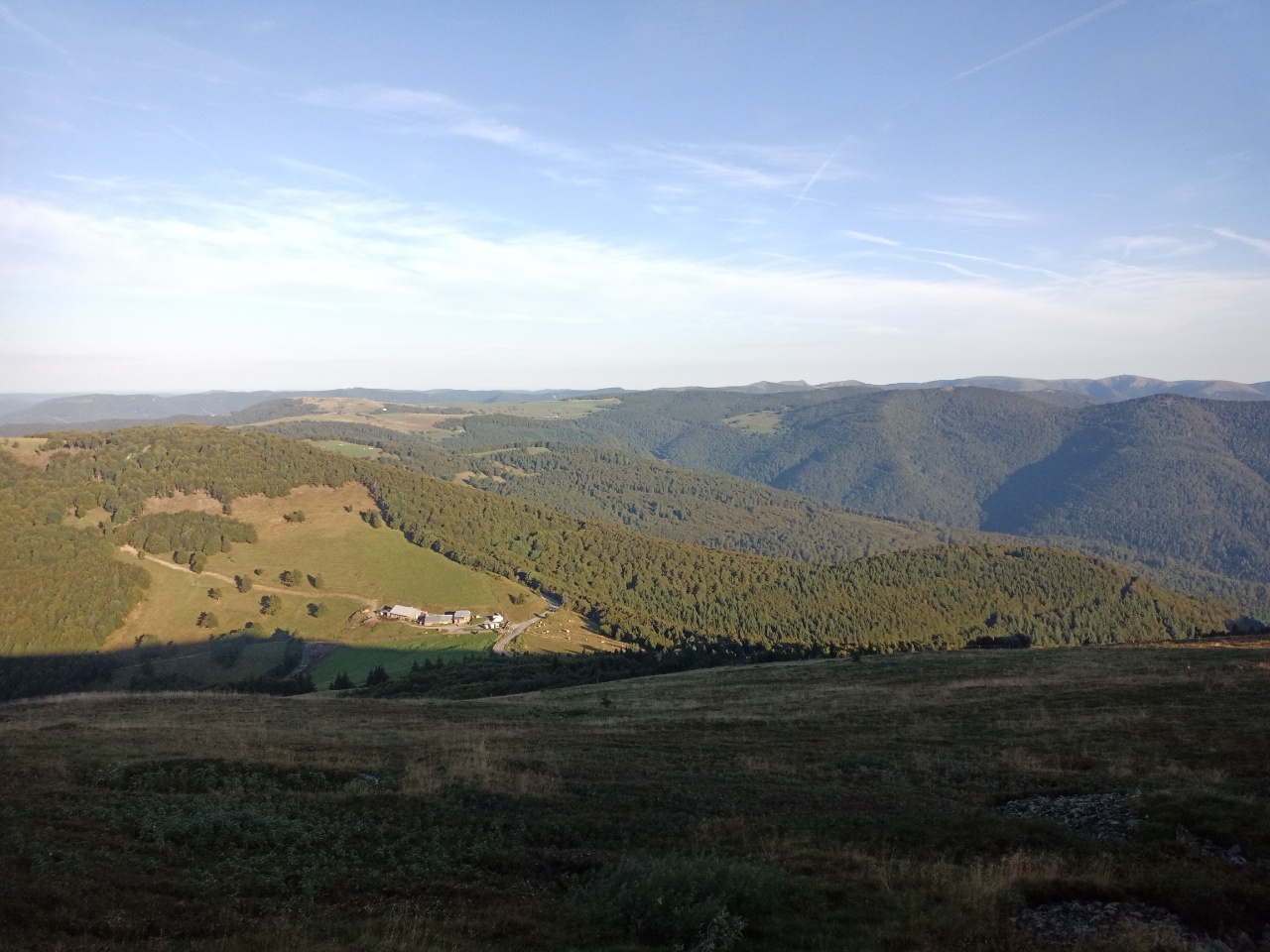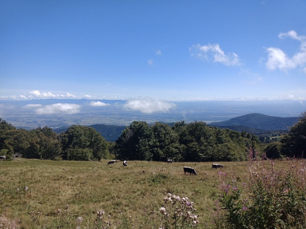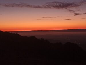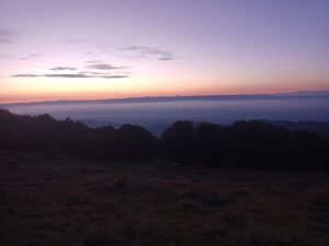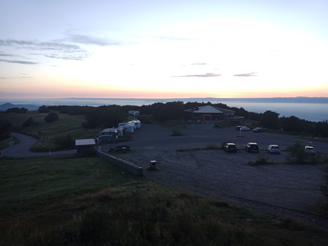 Tja …so ein kleines Auto ist jetzt nicht der optimale Schlafplatz…..zumal es noch recht kurzfristig war….aber es ging….ich hatte mich gewundert, dass zu der Zeit noch andere mit dem Auto auf der Strecke unterwegs sind …aber die kamen mir entgegen….oben angekommen, gab es noch einen anderen besetzten PKW….der machte sich aber dann bald ab …. ansonsten waren da noch Campingwagen zum Übernachten…..wie erwartet, war es etwas kälter….aber da konnte ich auch etwas dagegensetzen, so daß es aushaltbar war und ich auch schlafen konnte….ich wachte mehrmals auf um die Position zu wechseln und für kleine Geschäfte….vor 6h sah ich dann einen Wanderer mit Stirnlampe, der sich vermutlich zum Gipfel aufmachte….das hatte ich dann auch noch vor…..war aber, wie sich später herausstellte, eher ein angenehmer Spaziergang und gar nicht so weit ….ich lag wach im Auto und hörte auf einmal Stimmen…da waren irgendwann noch Leute hochgekommen und sitzen da irgendwo draußen….hmm….ich stieg dann aus dem Auto aus, lief ein paar Meter und sah in die Ferne Richtung Schwarzwald …..achso…. Sonnenaufgang… deswegen sitzen die da und warten und haben sich Kaffee mitgebracht…das waren aber nicht die Einzigen….. irgendwann kamen ein paar Radfahrer, die ebenfalls dafür dort hoch geradelt sind ….noch etwas vor Sonnenaufgang machte dann die erste Gastronomie auf … geführt von einem engagierten älteren Ehepaar….er winkte und rennte schon hin und her für die Vorbereitungen….vor allem für die Backwaren…. Kaffee gab es schon Mal einen….. Croissants dauerten noch, weil die frisch aufgebacken wurden…dann kam alles zusammen…. Kaffee…. Ofenfrische Croissants und Sonnenaufgang 🤓….also irgendwie bin ich dankbar, dass das gestern so ein Reinfall war und ich hierher gefahren bin …bin der Zeit kamen immer mehr Menschen und der normale Betrieb nahm seinen Lauf….ich machte mich dann an die Gipfeltour…. anschließend war etwas relaxen angesagt …ich war noch nicht richtig ausgeruht….aber dort oben wurde es mir dann zu hektisch, also fuhr ich weiter und kam an einen See, an dem ich etwas herumgelaufen bin, bis ich so müde war, dass ich mich zum Nickerchen auf eine schattige Wiese gelegt habe ….ausgeruht ging es wieder ans Auto…..also was mir stark auffällt und auch nervt….hier sind viele Raser unterwegs ….und bei einigen nach dem Motto Hauptsache laut, so dass man sie noch hunderte Meter weit hört….mehr Raser gibt es bei den Motorradfahrern….bei den Serpentinen nicht ganz ungefährlich…zumal man auch immer mit Fahrradfahrern rechnen muss….ich bin eher schleichend unterwegs und fahre zwischendurch lieber Mal an die Seite.