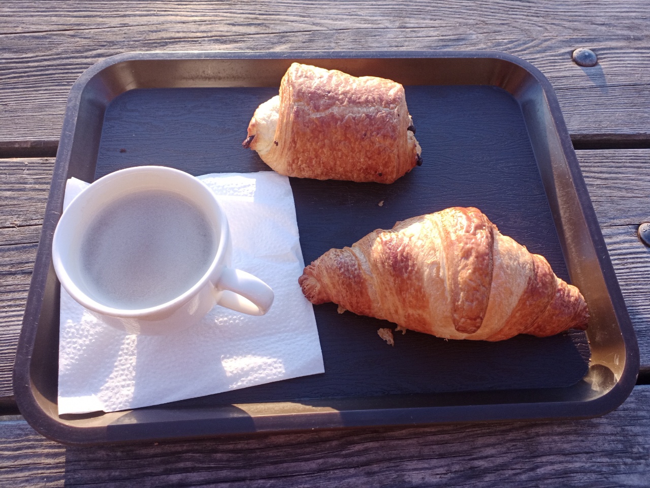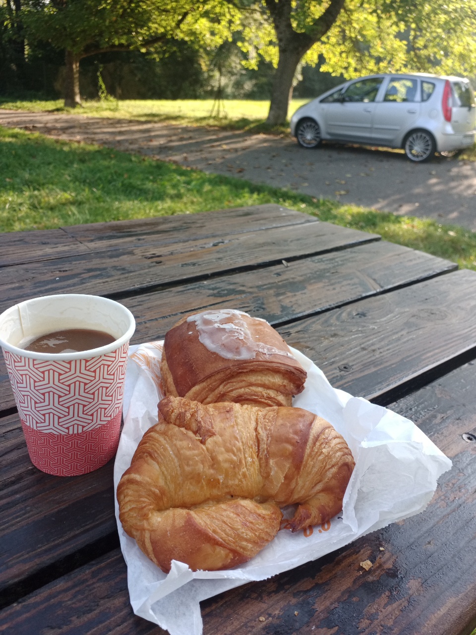 Mittlerweile ist schon vieles eingespielt…. heute Morgen zum Supermarkt Croissants und Café kaufen…..aber heute hatte der Café einen unattraktiven Beigeschmack….hmm….es war ja von so einem kleinen Kaffeevollautomat….oder waren es die Becher….keine Ahnung…. morgen werde ich vielleicht wieder etwas weiter zur Bäckerei fahren ….