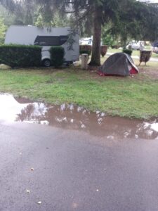 Sehr früh morgens ….es war noch dunkel…hörte ich ein ganz leises Grollen….. Gewitter?….Hmmm…. irgendwann später war es dann deutlich….es war Gewitter…..und kam näher, bis es sich schließlich über dem Campingplatz ausgelassen hat….Blitz, Donner, Regen…. glücklicherweise zog es schnell weiter….ich habe das Zelt dann erstmal nach dem Abbau in einen Raum zum Trocknen gebracht und bin frühstücken…. währenddessen habe ich dann auch meine nächste Unterkunft gebucht….da das Wetter weiterhin regnerisch bleiben soll, habe ich mich für einen „Holzkasten auf Beinen“ entschieden….auf dem Weg zum nächsten Campingplatz, kam ich durch Wissembourg…..dort war der Startpunkt meiner Vogesendurchquerung und ich hatte dort nur noch den Bahnhof in Erinnerung….daher nutzte ich die Zeit mir die Stadt noch etwas näher anzuschauen und erledigte auch Einkäufe und saugte das Auto aus…letzteres war dringend nötig…die Box auf Stelzen ist für eine Nacht Ok….auf jeden Fall braucht man sich am nächsten Morgen keine Gedanken um ein nasses Zelt zu machen….da der Platz nahe der Grenze zwischen Frankreich und Deutschland liegt, war ich dann zum Abendessen in Deutschland….was sich aufgrund der Auswahlkriterien einfach ergeben hat….satt hat es gemacht…. mit geringem Wiederholungsfaktor…. morgen geht’s nach Colmar….dort habe ich ein Zimmer gebucht….ich wollte dort Wäsche waschen…. Anreise ist aber erst ab 15h …die große Hitzewelle ist jetzt erstmal vorbei…..aber wäre schön, wenn es nicht regnet….und Sonne wäre auch toll 🙂