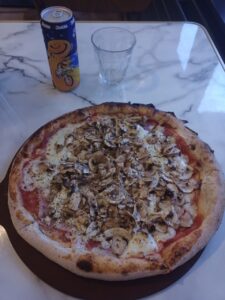 Schön ist aber schon das abwechslungsreiche kulinarische Angebot, wenn man abends etwas essen möchte…vieles kann man gut zu Fuß vom Hotel aus erreichen… allerdings ging es heute nicht ohne Regenschirm zum Abendessen…..es gab Pizza vom Italiener….und vielleicht gibt es auch noch Nachtisch….ja ….ein Roseneis….so, heute habe ich Luxus….die Toilette ist 2 Meter entfernt….. für morgen steht die Vogesenkammstraße auf dem Plan ….gute Nacht 🌃