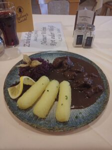 Nach der Besichtigungstour habe ich dann ein Zimmer in Ludwigswinkel gebucht…in einem Hotel-Restaurant….zum Abendessen gab es leckeren Hirschgulasch mit Klößen…..morgen werde ich dann die letzten Kilometer nach Hause fahren ….somit schreibe ich heute nicht nur „Gute Nacht“, sondern auch „Tschüss bis zum nächsten Mal! 🌃🥐😎☕🦉“
